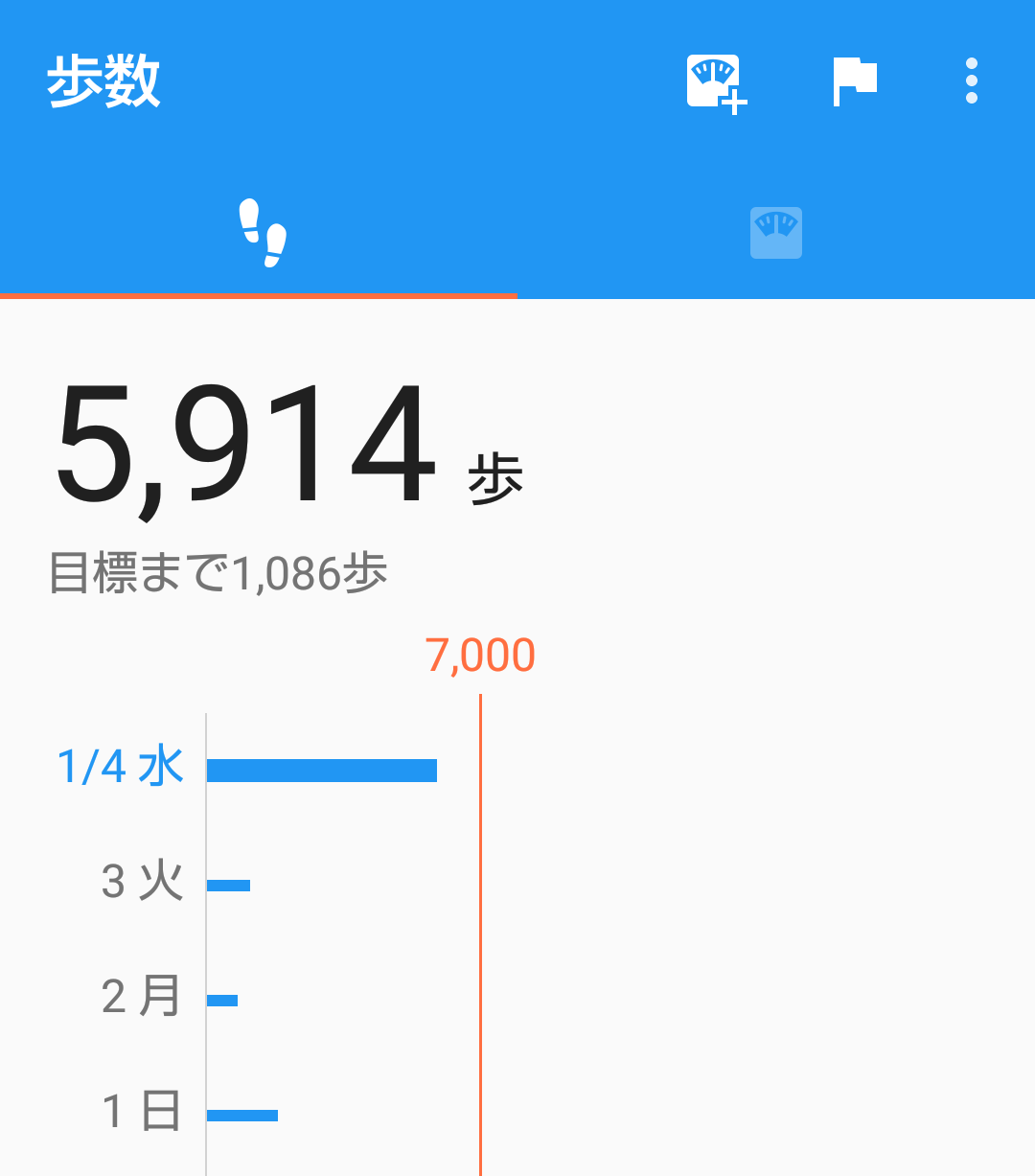 目標7,000歩まであと1,000歩。